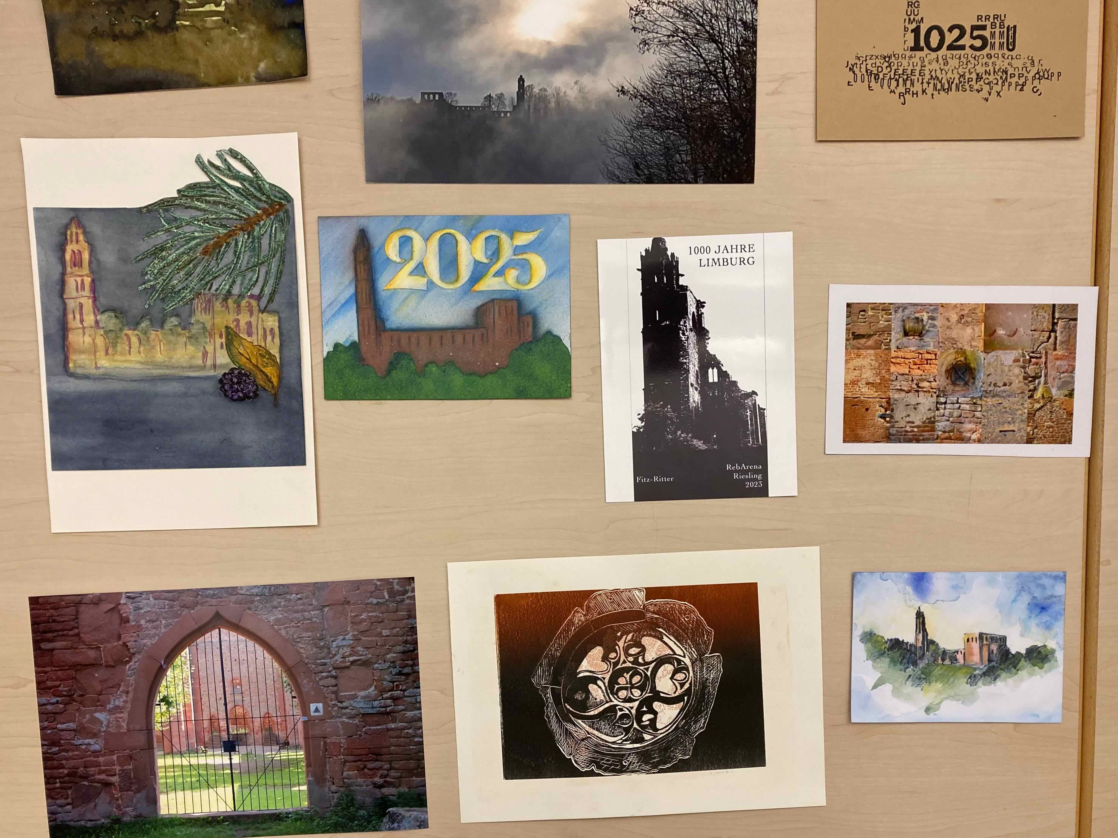 Um sich aktiv am Limburg-Jubiläum zu beteiligen, hatten wir vom Kunstverein die Idee, mit unserer Aktivengruppe künstlerische Weinetiketten zu gestalten, um Wein und Kunst zusammenzubringen.  Seitens unserer Mitglieder wurden dafür 27 Entwürfe abgegeben, davon wählte eine Jury 3 Vorschläge aus. Ein städtisches Gremium entschied sich dann für das Motiv von Saskia Bauer, die die künstlerischen Rechte der Stadt Bad Dürkheim als Beitrag zum Limburg-Jubiläum schenkte. Die Sonderedition ist als Gebinde im Touristenbüro erhältlich und umfasst einen Rotwein und einen Sekt.