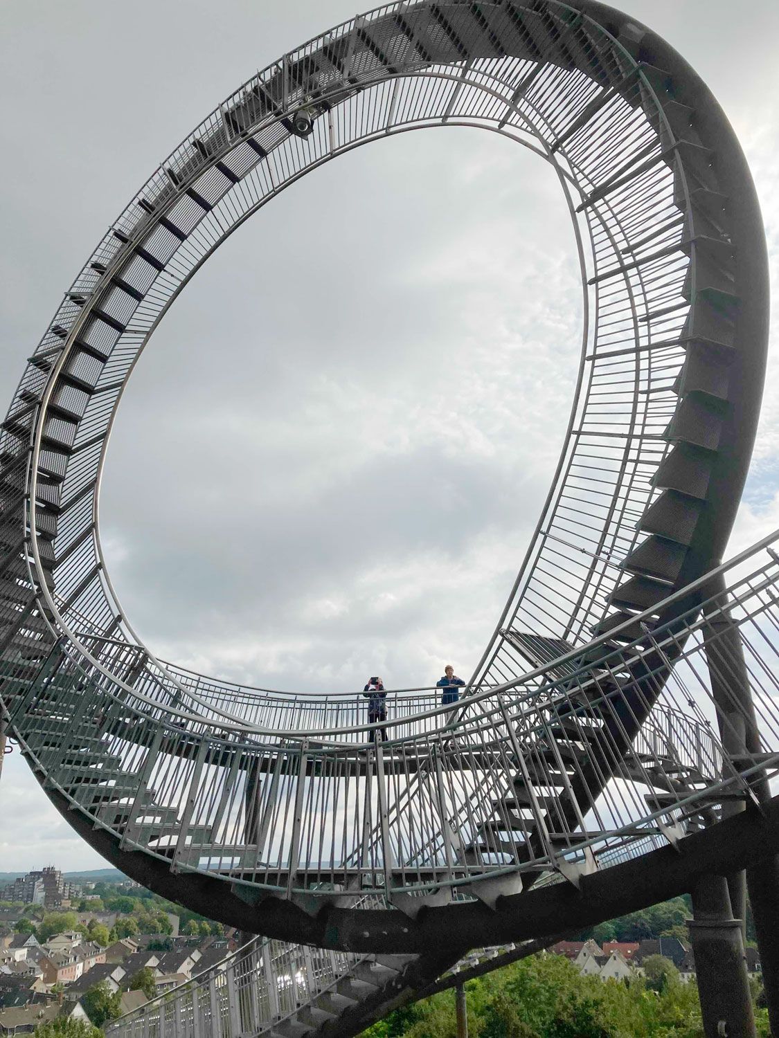 Der letzte Tag: „Tiger and Turtle“, die weithin sichtbare Großskulptur zog uns in ihren Bann. Ganz im Sinne der Skulptur näherten wir uns mehr oder weniger bedächtig der Anhöhe, auf der das 20 m hohe Monument steht, um oben unsere Gedanken fliegen zu lassen und unseren Blick über die Industrielandschaft schweifen zu lassen. Ein Erlebnis!