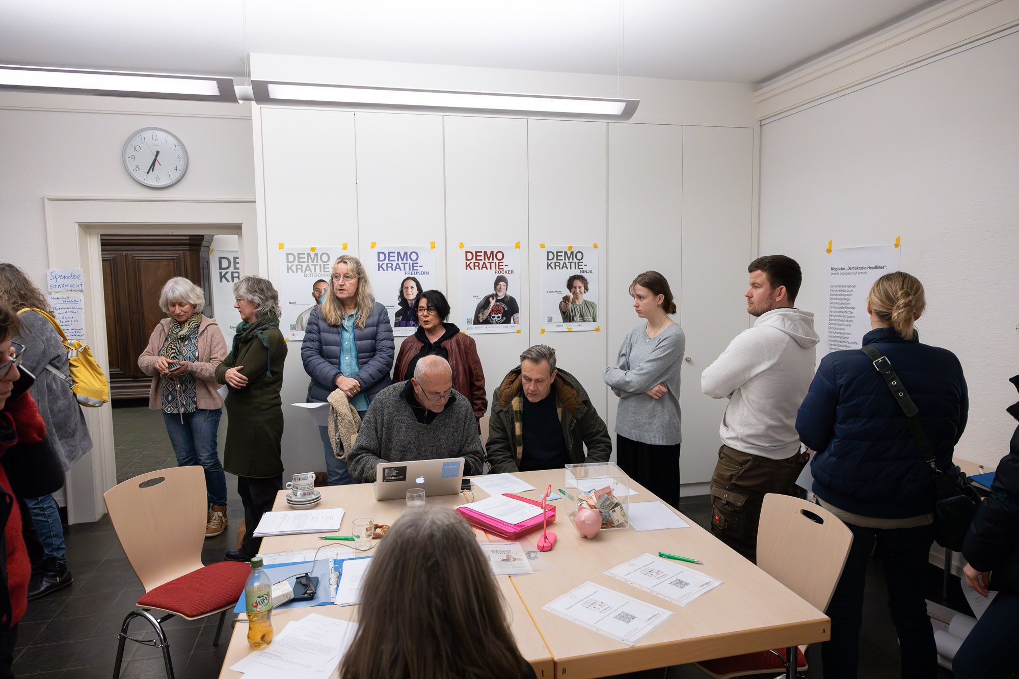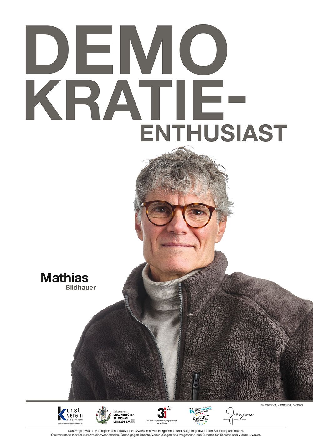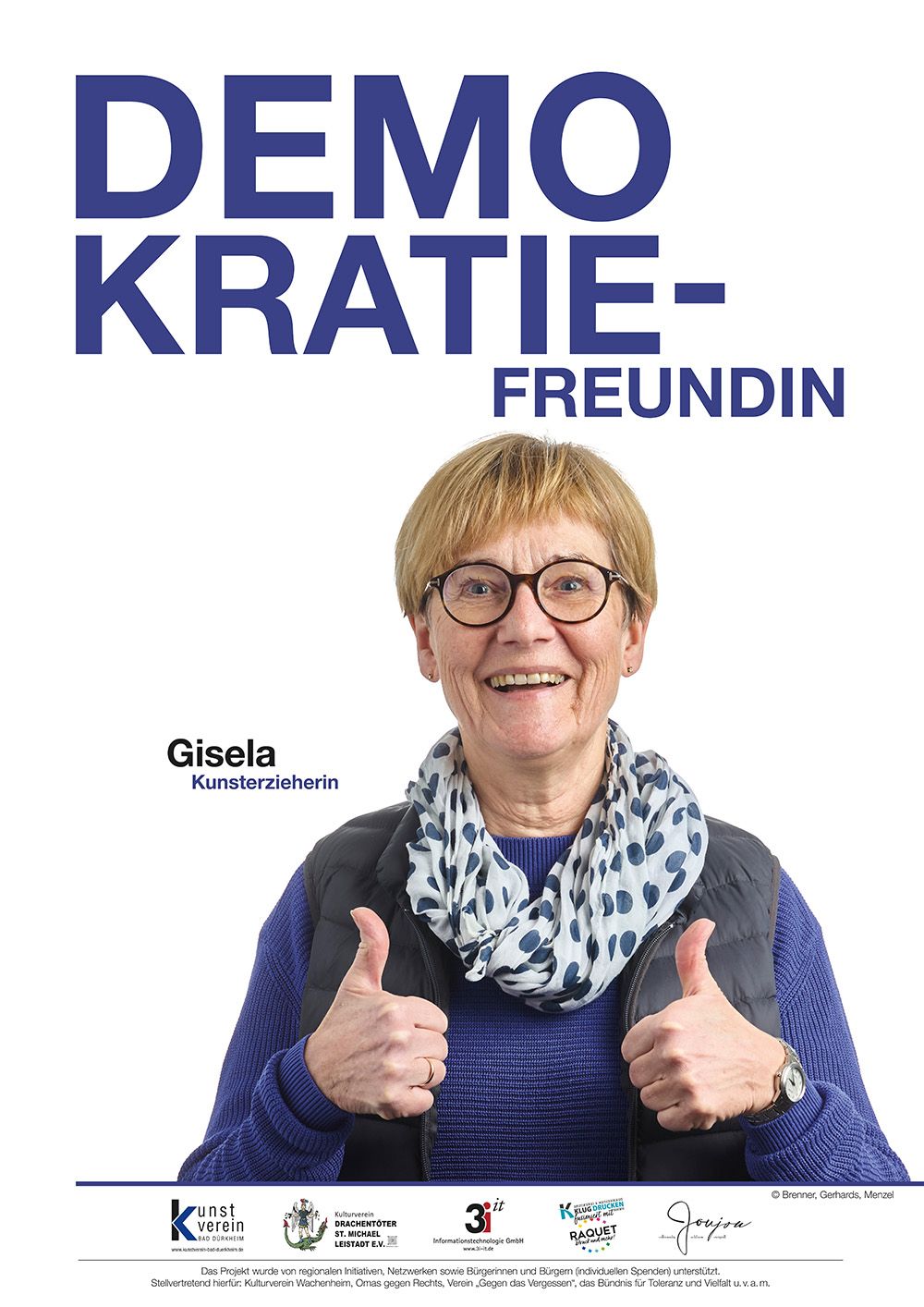 Doch dieser humanistische Ansatz der Demokratie gerät zunehmend unter Druck. 2023 befürworteten bereits sechs Prozent der Deutschen eine Diktatur. Parteien mit einem rechtsextremen Weltbild finden großen Zuspruch, welt-, europa- und landesweit. Verfassungsfeindliche und menschenverachtende Äußerungen, rechtswidrige Gesetzesvorhaben und Übergriffe gegen Menschen von jenseits des eigenen Horizonts haben erschreckende Ausmaße angenommen. Der Kunstverein unterstützt die Foto-Aktion von Thomas Brenner.